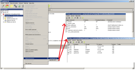 3. Upravit konfigurační soubory PostgreSQL; nutné upravit oba soubory;